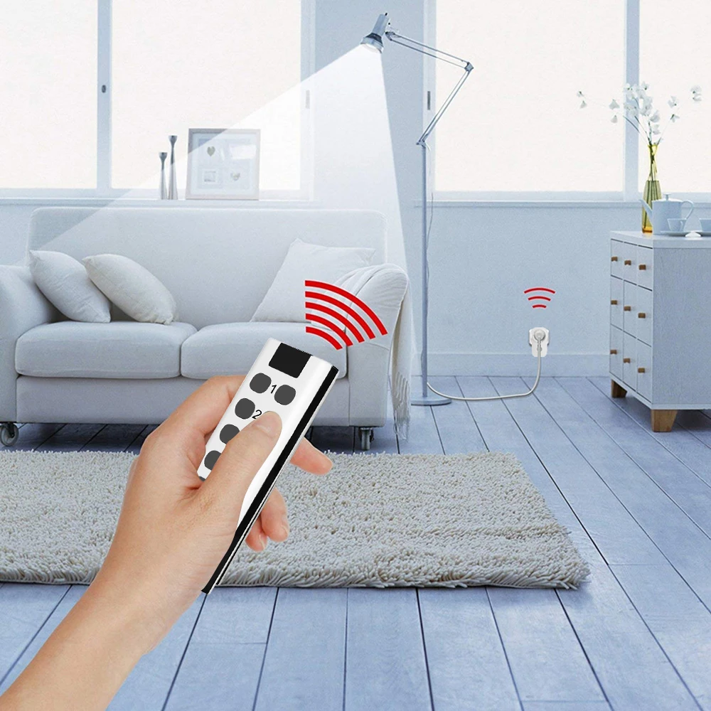 Примечание:Все розетки с дистанционным управлением были предварительно запрограммированы и могут быть использованы немедленно.Чтобы повторно запрограммировать передатчик дистанционного управления и приемник гнезда, следуйте инструкциям ниже.Детальная Самообучающаяся операция:Перепрограммирования■Подключите розетка с дистанционным управлением к точке питания и включите питание.■Нажмите и удерживайте кнопку питания приёмника розетки около 3 секунд, пока светодиодный индикатор не включится.■Release кнопку питания.■Нажмите левую кнопку передатчика. Программирование гнезда успешно, когда светодиодный индикатор мигает, пока он не включится.■Нажмите на правую кнопку передатчика. Ночной светильник успешно программируется, когда светодиодный индикатор мигает до тех пор, пока не загорится.(Примечание: интервал программирования левой и правой кнопок должен быть менее 8 секунд, в противном случае Ночной светильник не может быть запрограммирован.)▪ Розетка с дистанционным управлением теперь готова к использованию.Четкое Программирование■Подключите розетка с дистанционным управлением к точке питания и включите питание.■Нажмите и удерживайте кнопку питания приёмника розетки около 8 секунд, пока светодиодный индикатор не начнет мигать, чтобы выключиться.■Отпустите кнопку питания. Четкое Программирование успешно.Примечание:Батарея не входит в комплект, чтобы избежать проблем с доставкой.Убедитесь, что установка аккумулятора и гнезда прочная, безопасная и правильная.Только для использования в помещении, он должен быть установлен в местах аэрации и вдали от высокотемпературного источника.Обязательно Избегайте сильного солнечного света, дождя и влагиНе превышайте максимальный ток нагрузки.