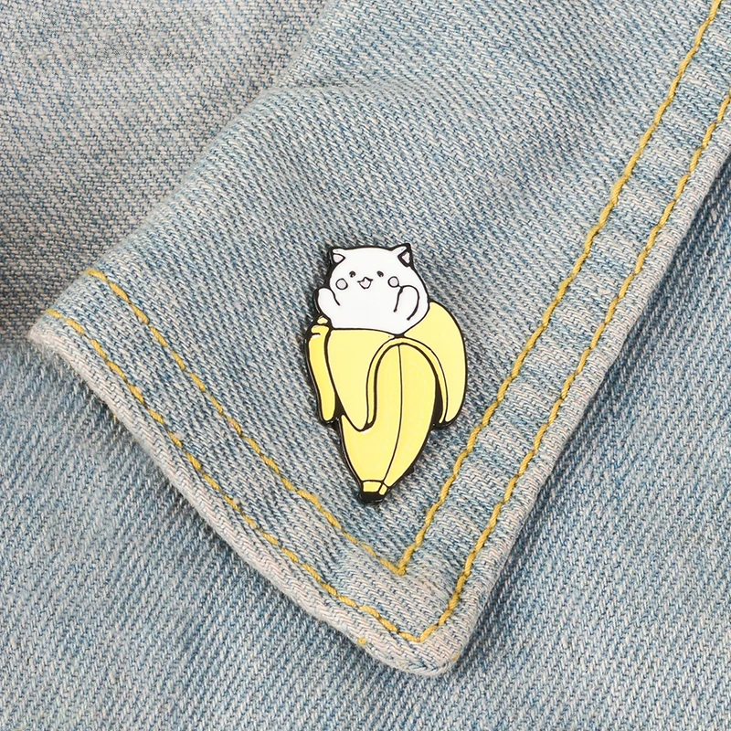 Эмалированные заколки в виде кота, банана, мультяшных животных, фруктов, значки, джинсовые заколки для лацканов, милые котята, ювелирные изделия, подарок для друзей, детей