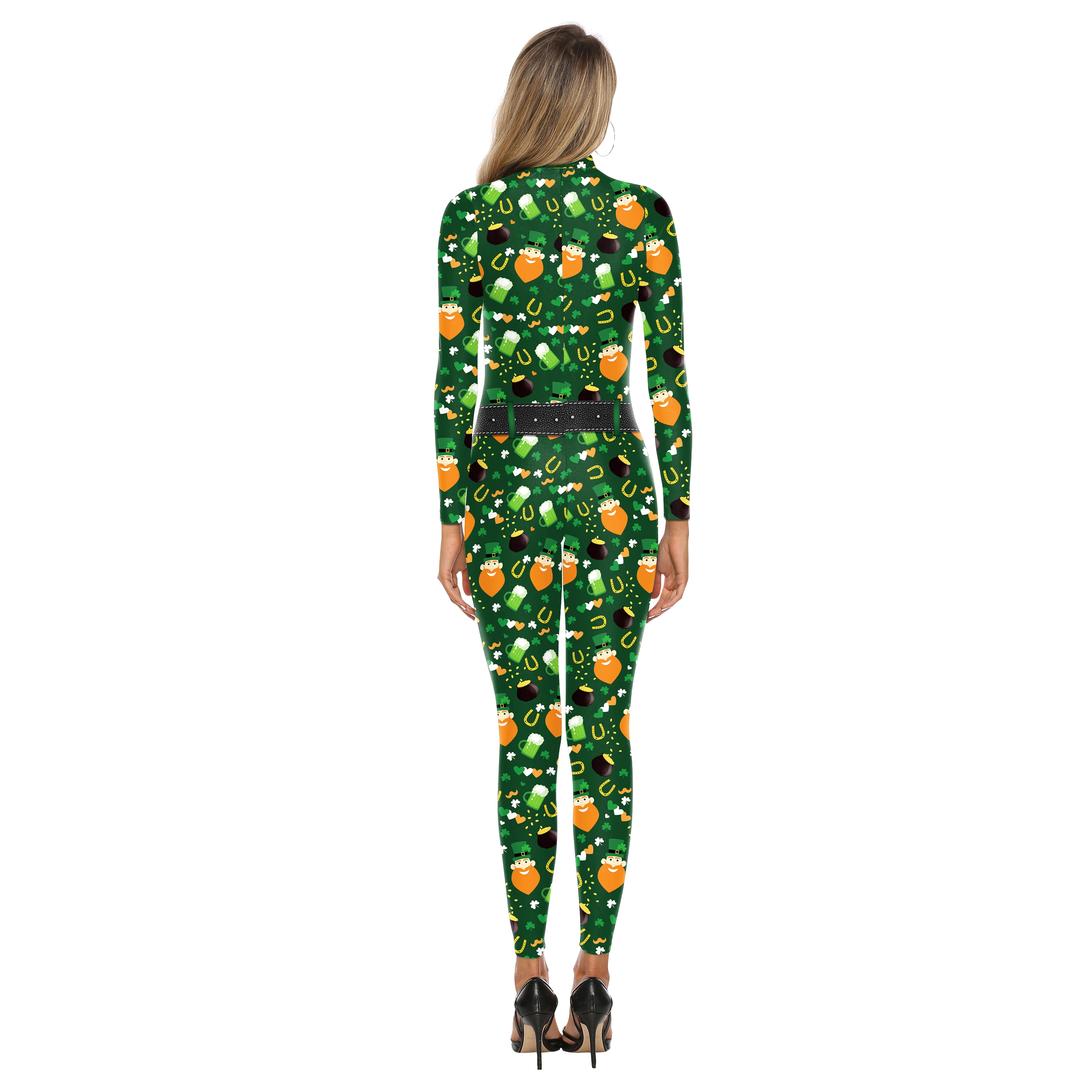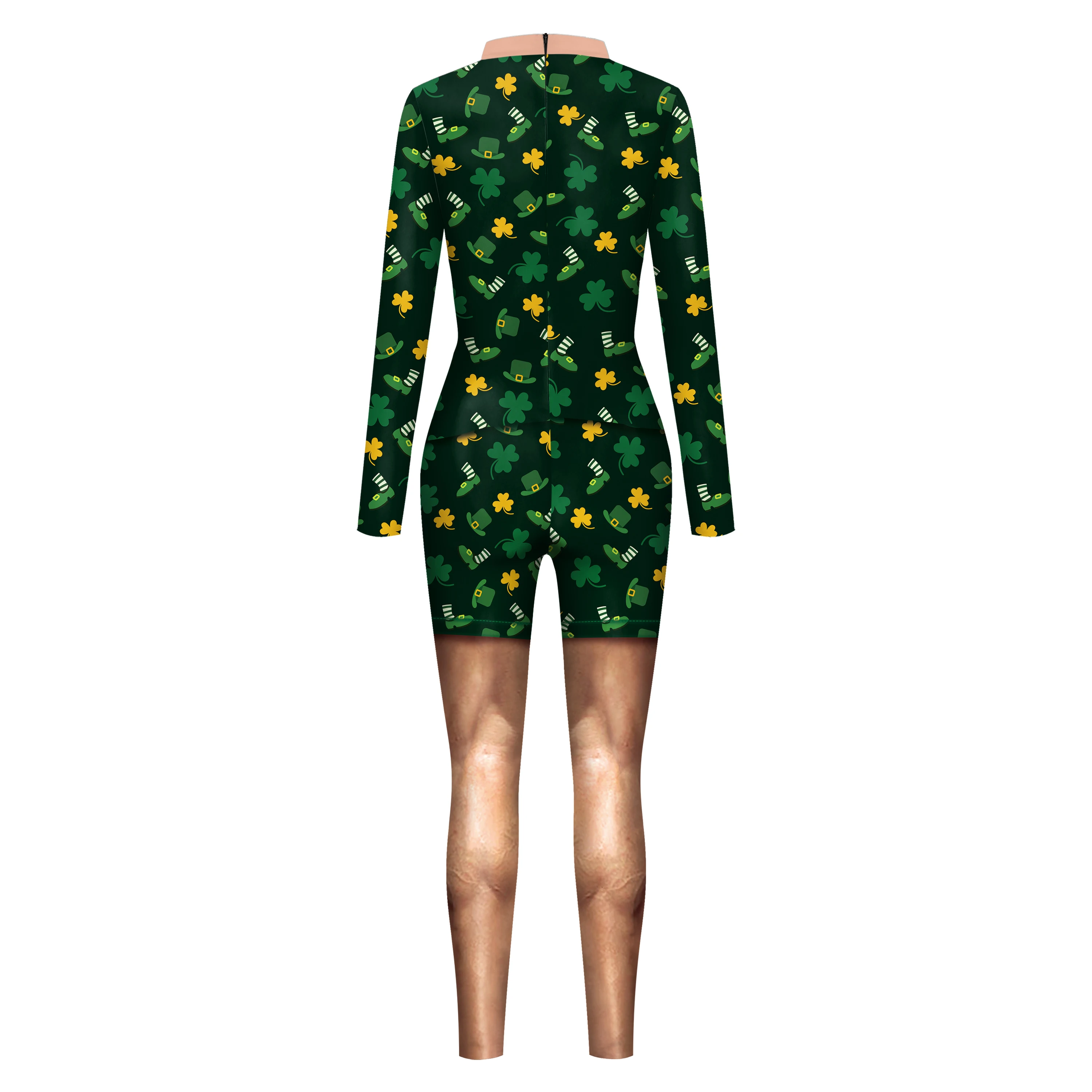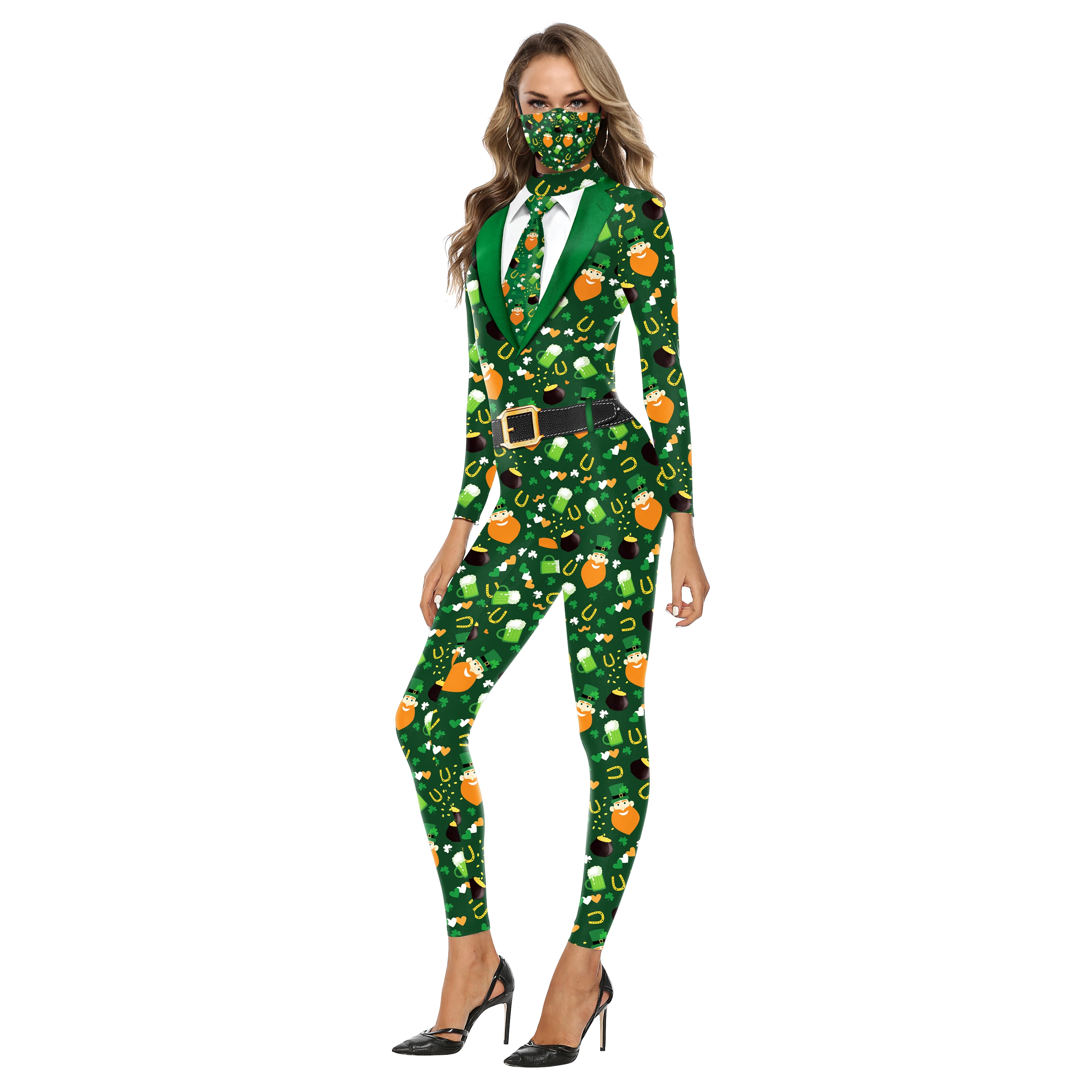 VIP модные Ирландия Национальный день карнавальный костюм трилистника принт эльфийский наряд сексуальные костюмы для костюмированной вечеринки для женщин; Большие размеры, боди-комбинезон, комбинезон
