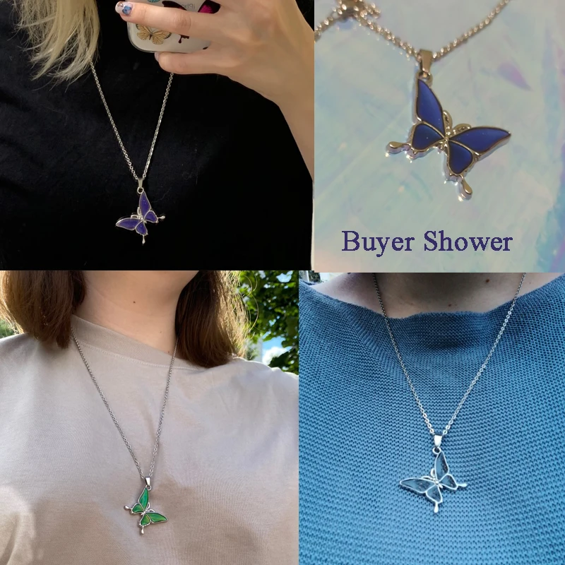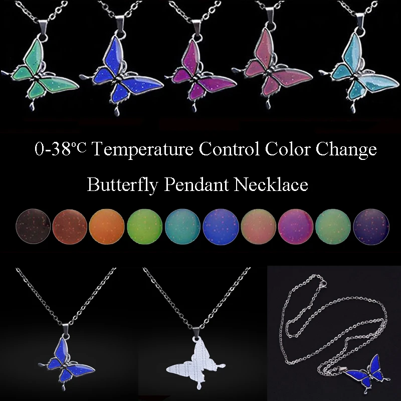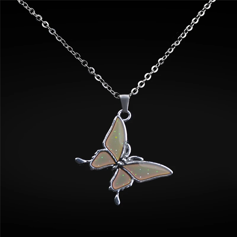 Модное ожерелье с подвеской в виде бабочки с контролем температуры, ожерелье из нержавеющей стали, ожерелье в виде настроения, женские массивные ювелирные изделия