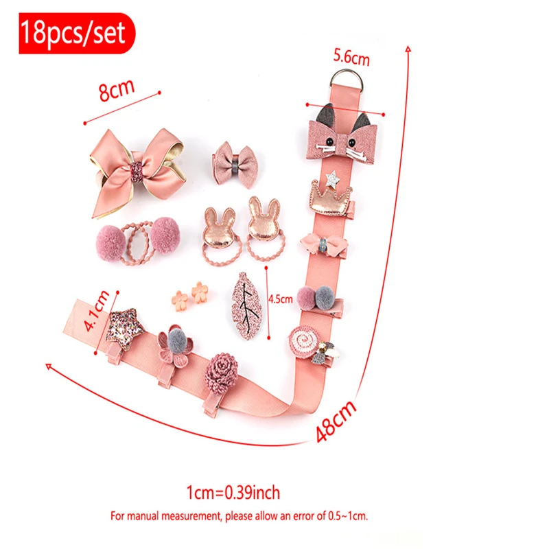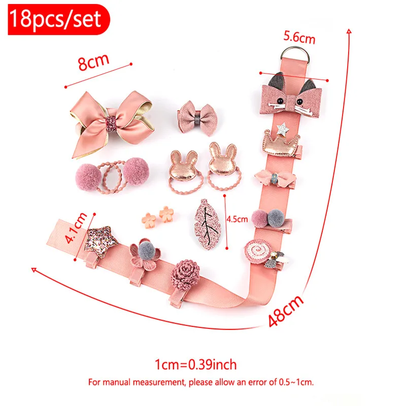 Набор из 18 заколок для волос, милые аксессуары для волос для девочек, Мультяшные заколки для волос с бантом, цветами, животными, резинки для волос