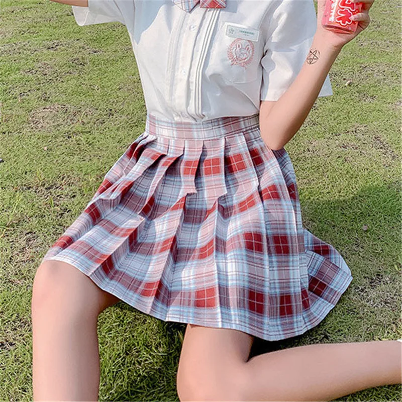 Женская плиссированная мини-юбка, Повседневная Милая клетчатая юбка в Корейском стиле с высокой талией и принтом в стиле Харадзюку, лето 2022
