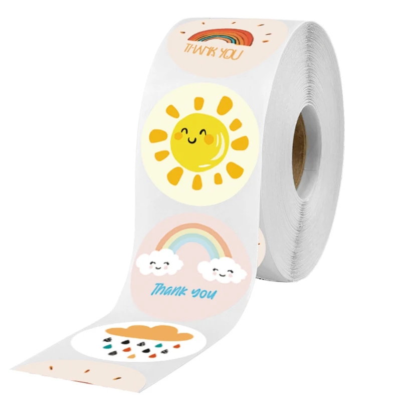 500 шт. круглая футболка с декором в виде милый солнце Радуга стикер с облаками, ручная работа подарок украшение детские наклейки награды
