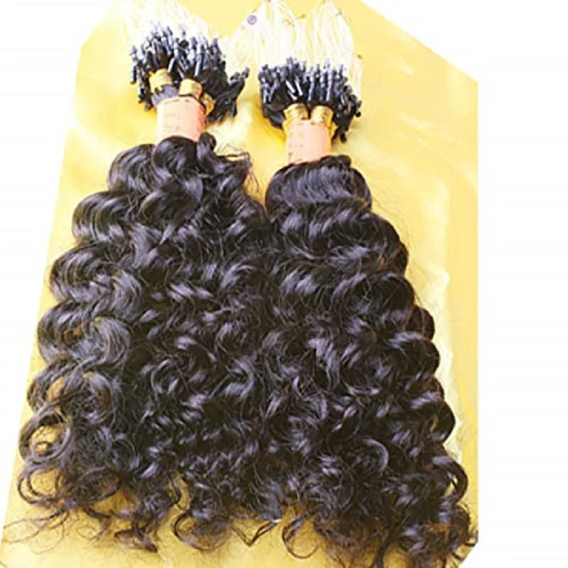 Наращивание человеческих волос с глубокой кудрявой микропетлей, мал...
