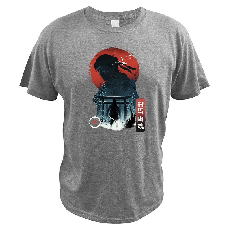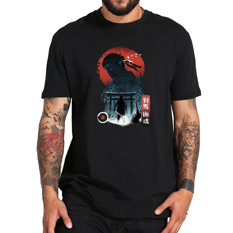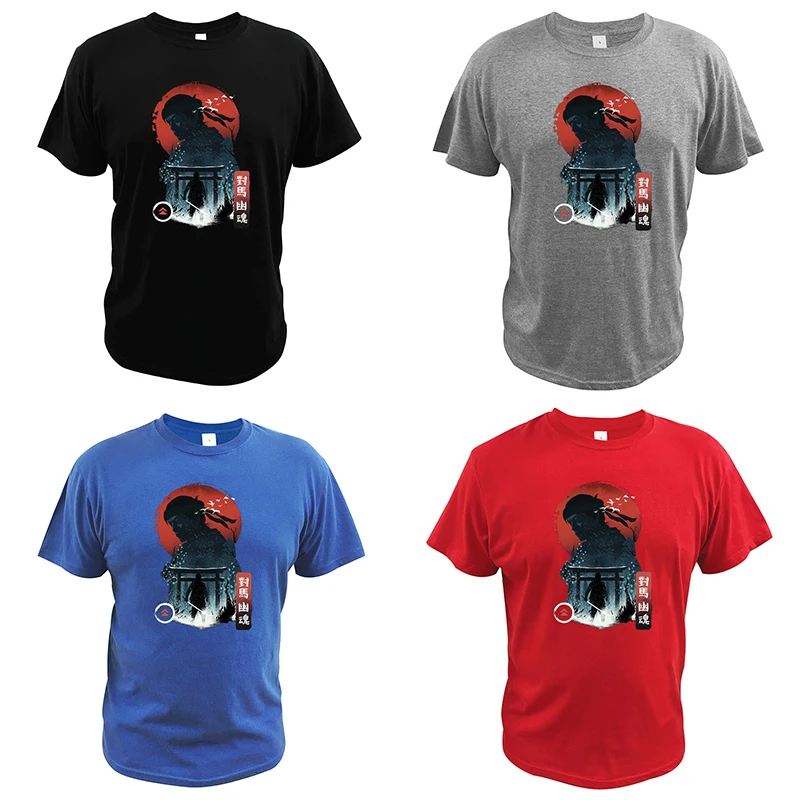Футболка с самурайским воином, футболка с призраком цушимы, 100% хлопок, мягкая Базовая футболка с коротким рукавом для экшн-приключений
