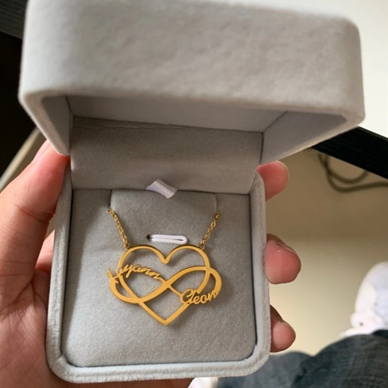 Индивидуальная нержавеющая сталь в форме сердца, название знака бесконечности, искусственное персонализированное золото, эффектное женское