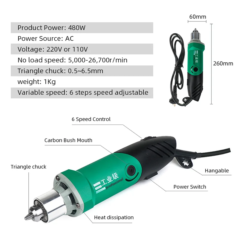 Мини-дрель Tungfull Dremel, Гравировальный набор с регулируемой скоростью, электрическая дрель сделай сам, электрические инструменты 480 Вт, полировка