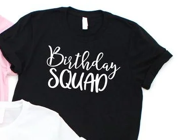 На день рождения с круглым вырезом с принтами "Отряд рубашка для девочек Футболка со смешным буквенным Хлопковая женская футболка с коротким рукавом топы, футболки размера плюс с круглым вырезом в стиле унисекс, одежда эстетическое