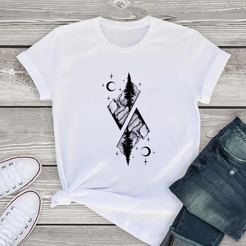 Летние топы; Эстетическая Футболка с принтом горы; Женская Винтажна...