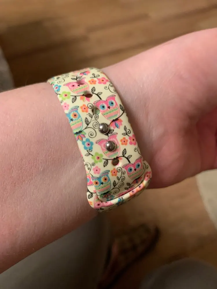 Очень красивый дизайн. Он имеет много отверстий для регулировки размера и может быть отрегулирован на очень маленьких запястьях. Рисунок выглядит солидно, не похоже, что со временем он ухудшится.
