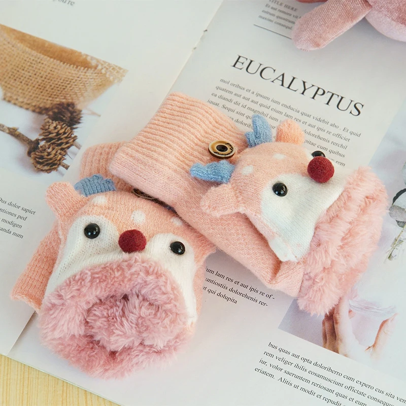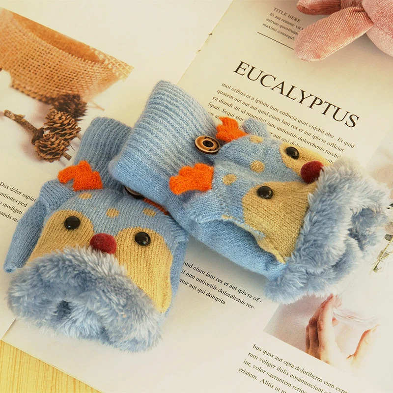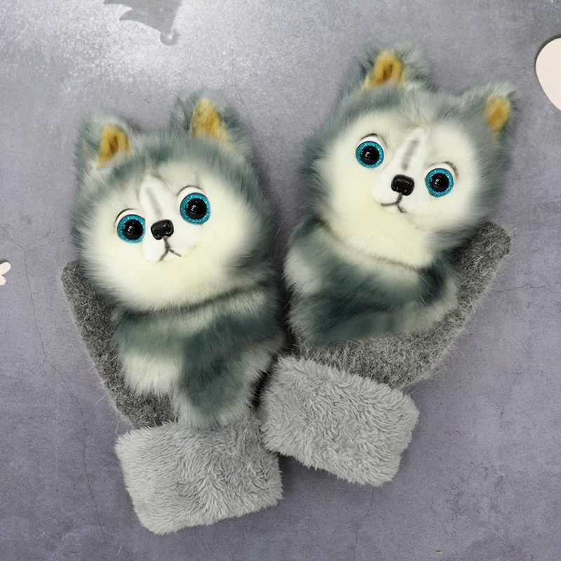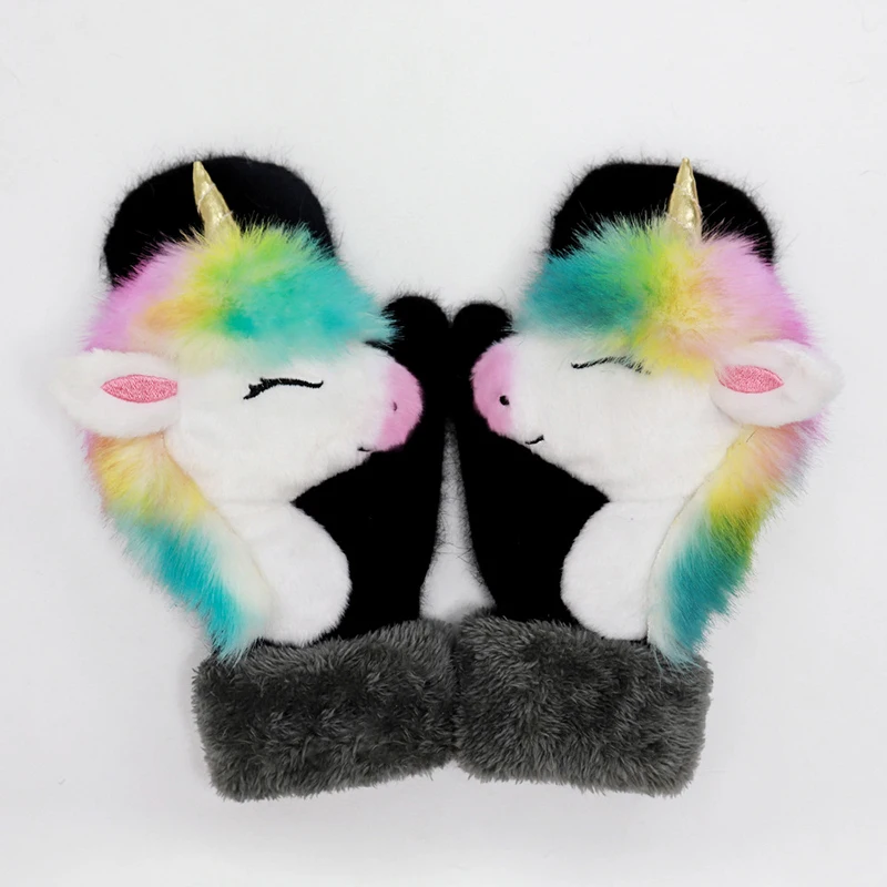 Детские зимние перчатки с рисунками животных, толстые теплые хлопковые бархатные перчатки для подростков с изображением кошки, панды, енота, единорога, дизайнерские варежки для мальчиков и девочек