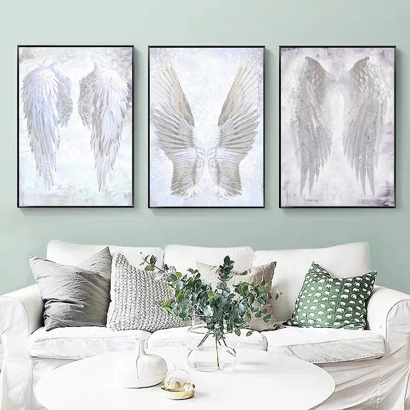Современная Абстрактная живопись, белый принт в виде перьев Крылья Ангела Плакаты и принты картины на холсте искусство стены фотографии для Декор в гостиную (без рамки)