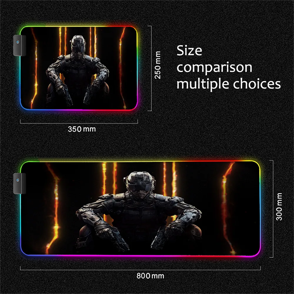 Игровой коврик для мыши XGZ Call of Duty Black Ops RGB, большой коврик для мыши, Настольный коврик с застежкой по краям, светодиодные игровые аксессуары, Настольный коврик