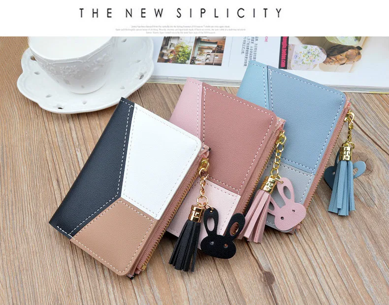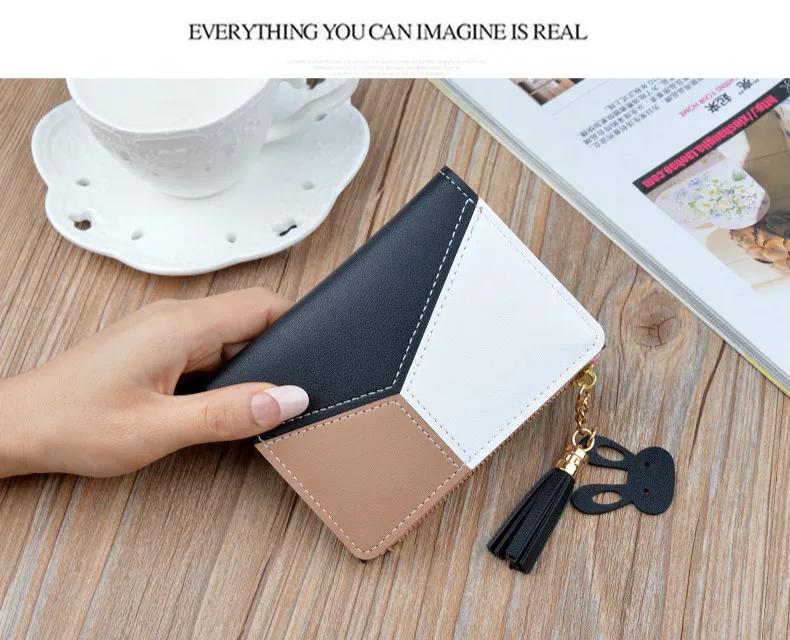 Короткий женский кошелек контрастных цветов с геометрическим узором, милый бумажник с кисточками и множеством держатель для карт, студенческий кошелек на молнии, 2020