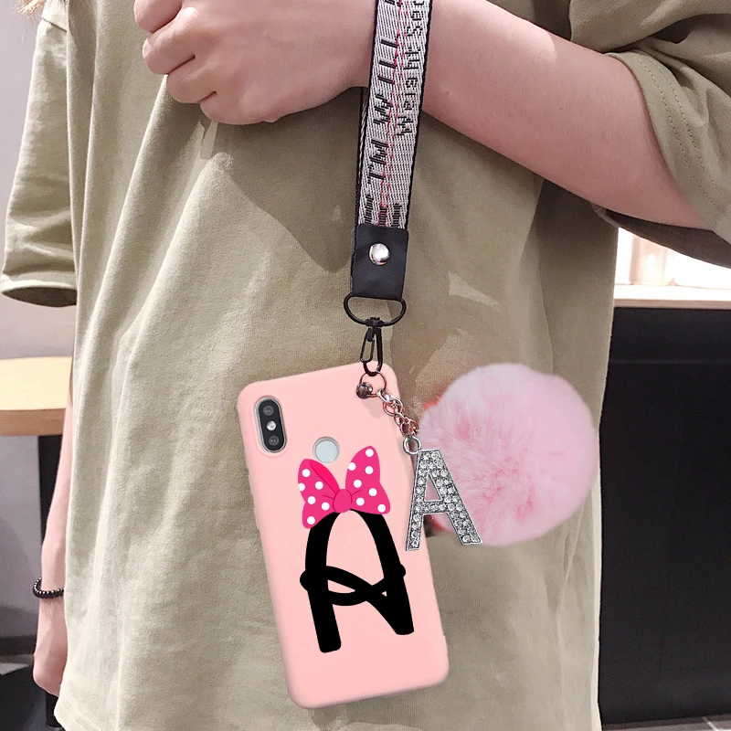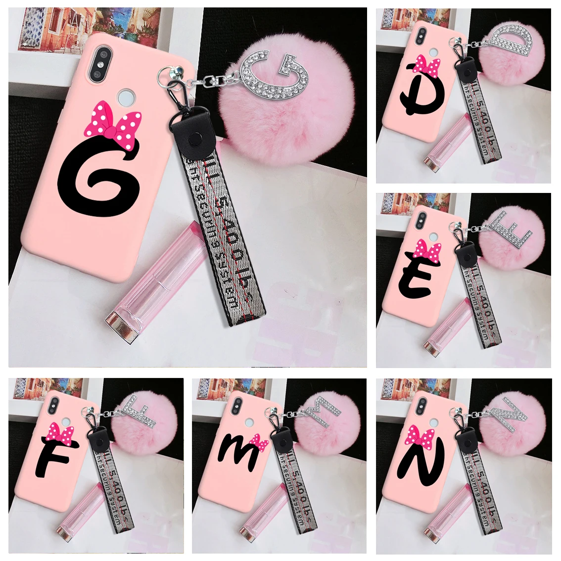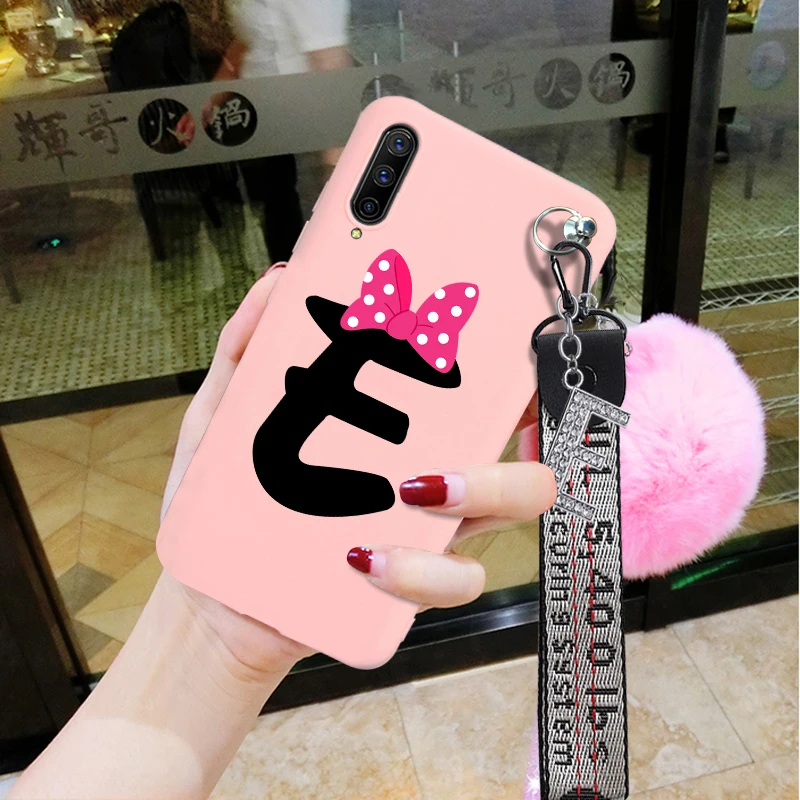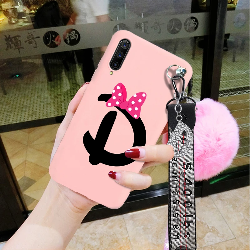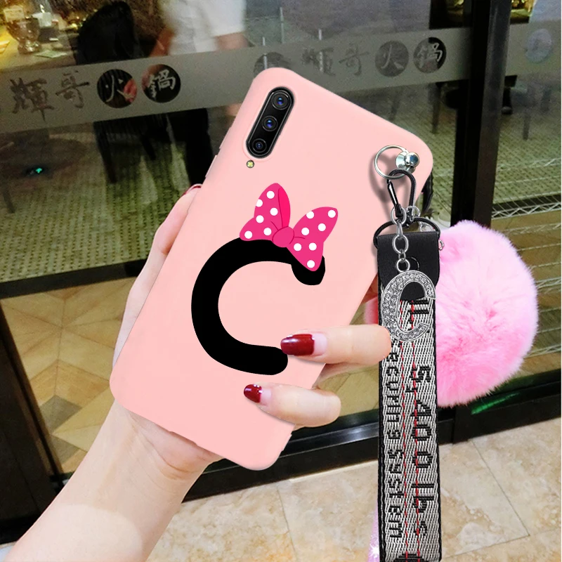 Силиконовый ремешок с милыми буквами A B C, чехол для Samsung galaxy A21S, A31, A51, A71, A10, A50, A70, A12, A32, A52, A72, чехол с меховым шариком и бантом