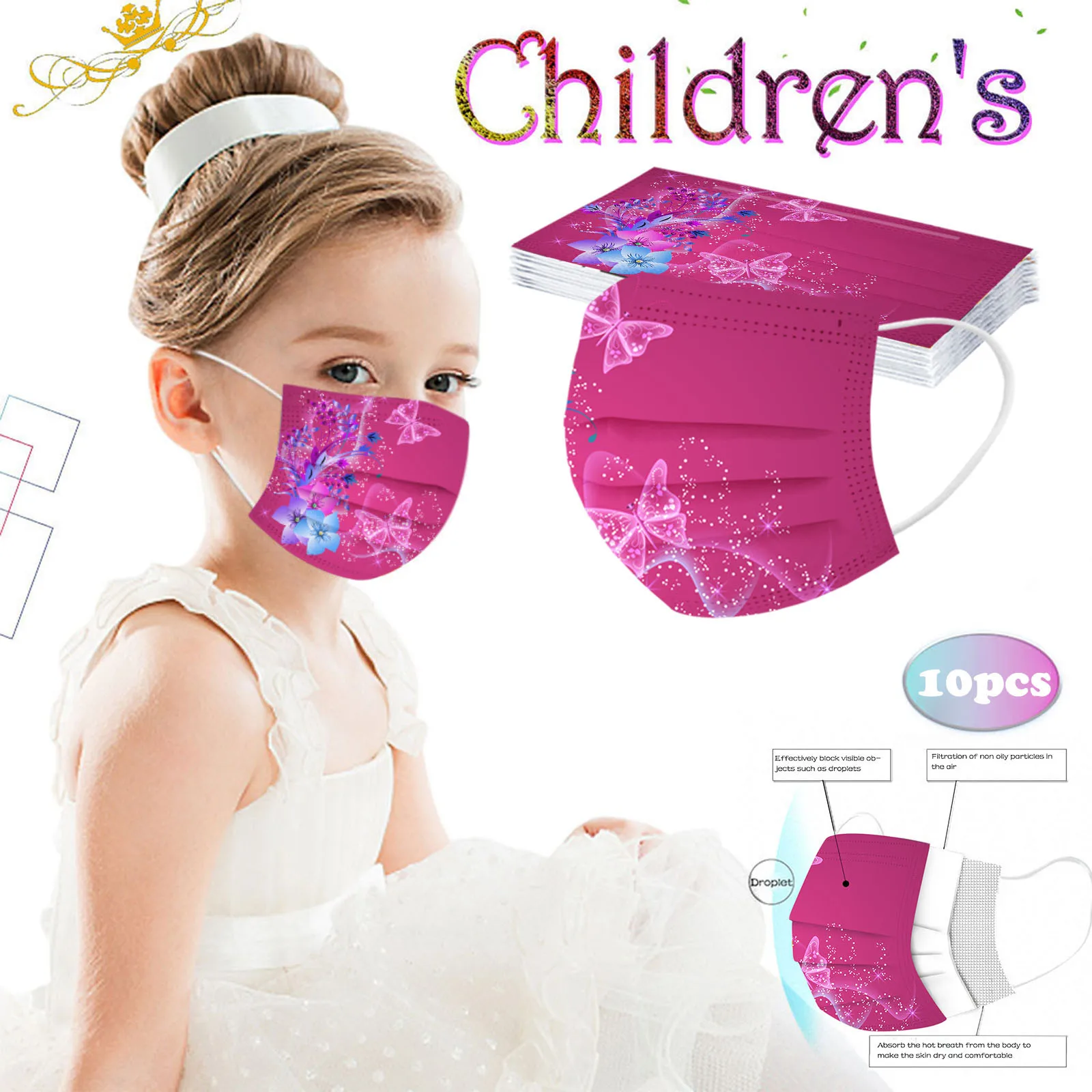 10 шт. одноразовые маски для лица для детей с принтом бабочка PM2.5 крышка Три Слои защитная маска для лица Mascarillas нетканое полотно