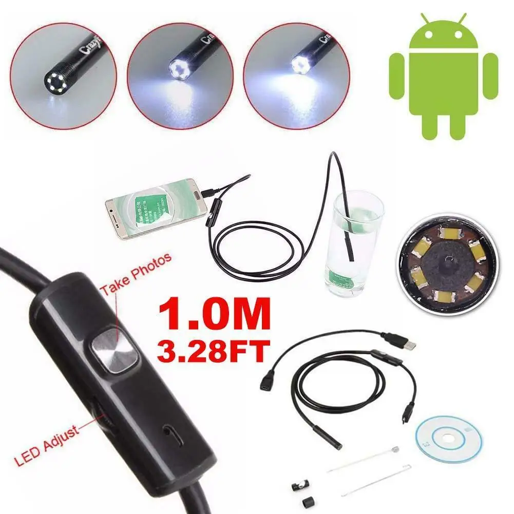 Android endoscope-это новый тип электронных продуктов.Преимущества данного товара заключаются в следующем: маленький размер, светильник вес фронтальный модуль скорлупе диаметром 5,5 мм, средняя часть установки распределительный ящик, можно регулировать яркость 6 светодиодный индикатор, записывает изображение после того, как фотография непосредственно снимает фотографии, хранящиеся в Android мобильный телефон, видео может записывать весь процесс осмотра, удобный для наблюдения и анализа Последующие действия