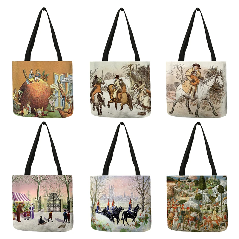 Персонализированные Индивидуальные женские дизайнерские сумки-тоут, сумки для верховой езды на лошадях в снежной живописи, сумка для покупок, складная B13199