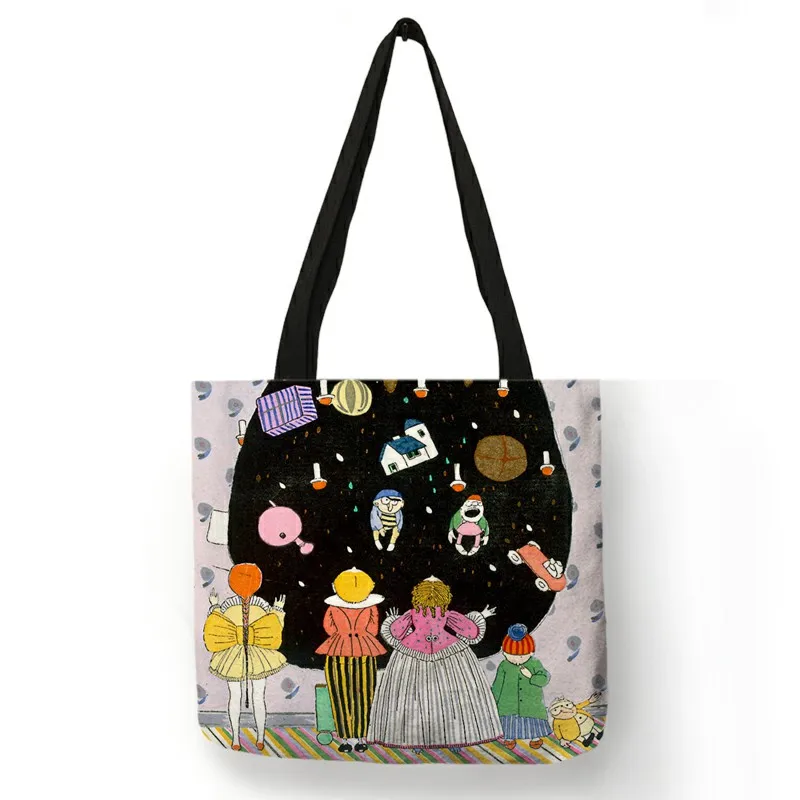 Женская сумка-тоут с милым рисунком, экологически чистая льняная мо...