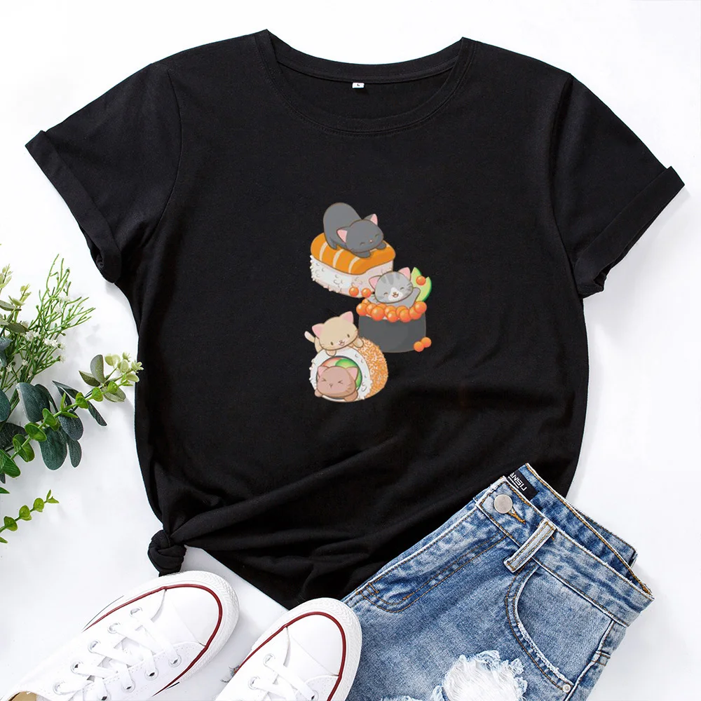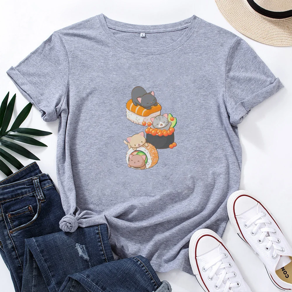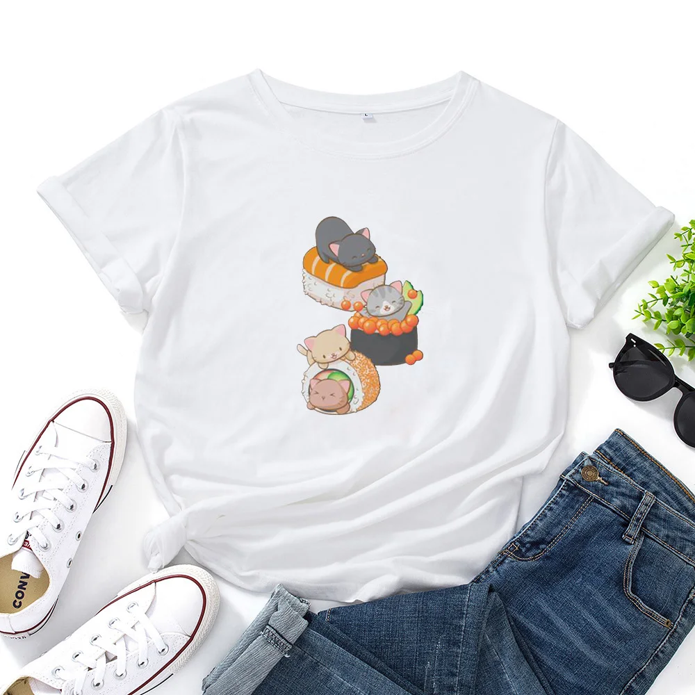 Суши с принтом женская забавная футболка с Короткими Рукавами Летняя футболка для женщин Свободные повседневные футболки Femme Harajuku футболка Camiseta Mujer