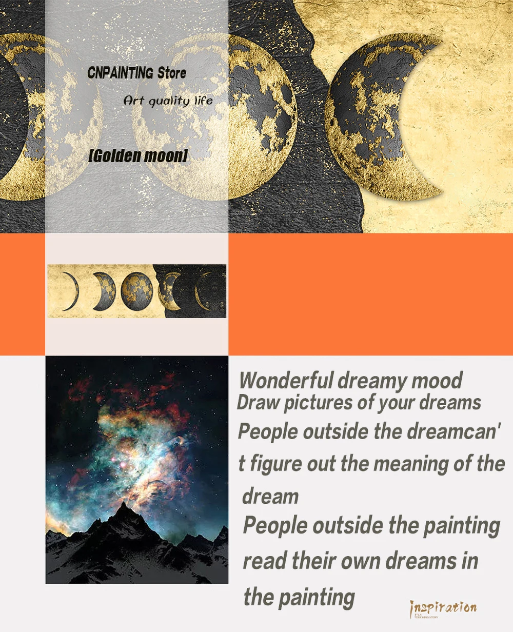 Большой Размеры Золотой Фольга Moon холст художественные плакаты и ...