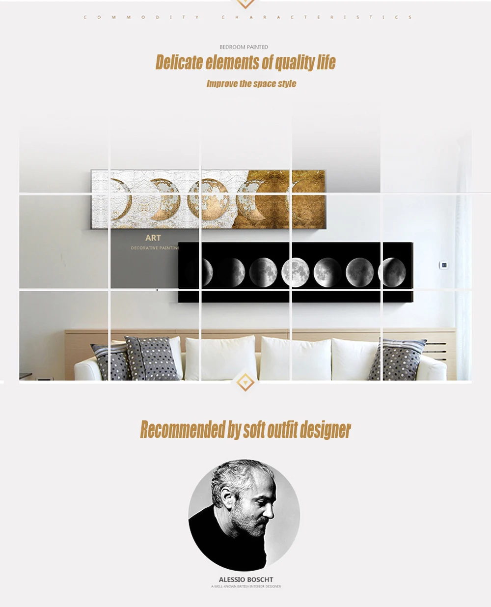 Длинная Современная Абстрактная живопись Wall Art полное лунное зат...