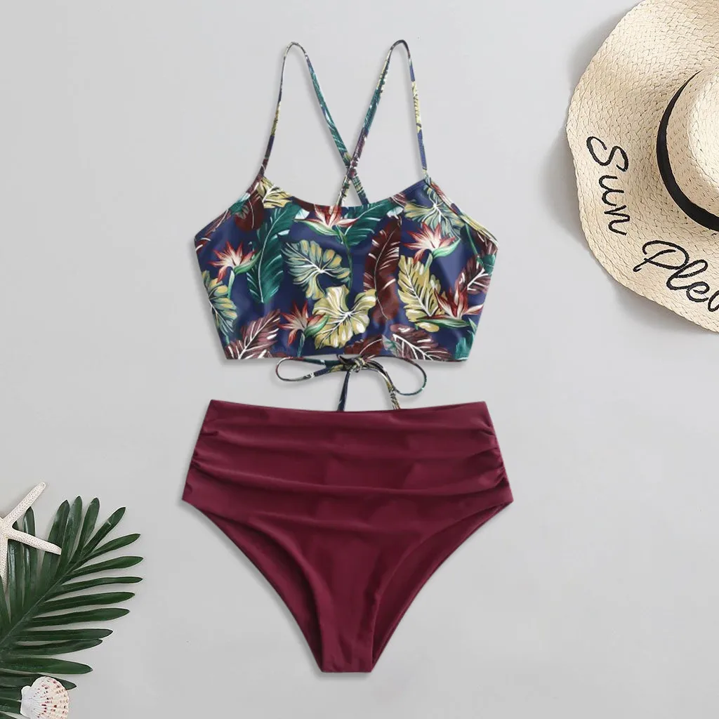 Сексуальный женский комплект бикини с принтом, пляжная одежда для купания купальник