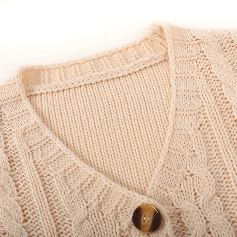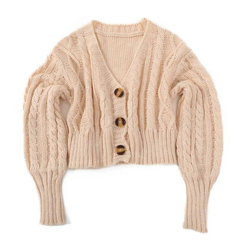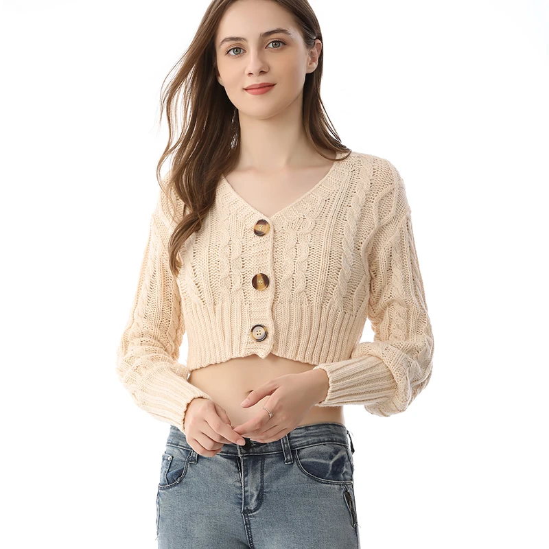Женский укороченный вязаный кардиган, однобортный свитер цвета хаки с длинным рукавом, Осень-зима 2020