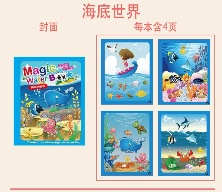 Книжка с акварельными картинками для детей, можно использовать повторно, GC00068