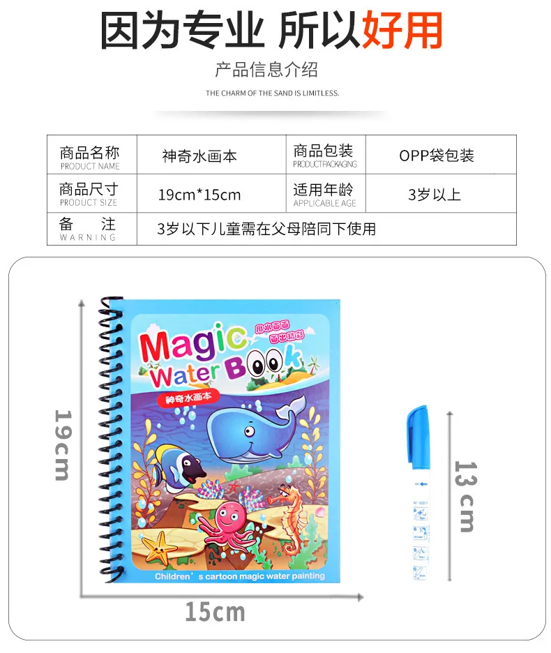 Волшебная книга для рисования водой, книга-раскраска, ручка, рисова...