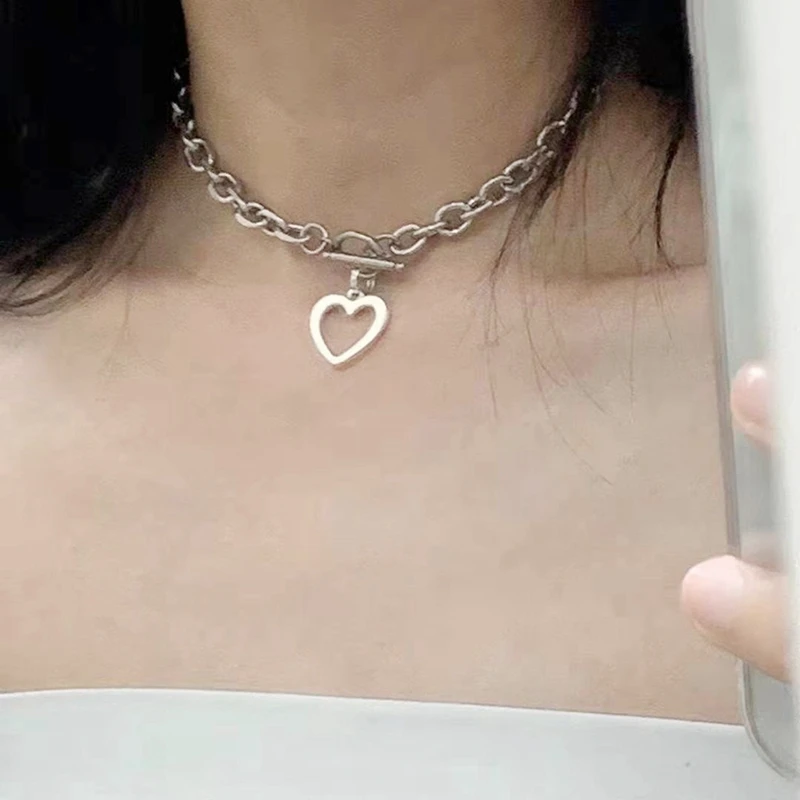 Женский ошейник в стиле хип-хоп, панк, Готическая цепь, чокер, металлическая цепочка до ключиц, регулируемое ожерелье в форме сердца для женщин, модные ювелирные изделия