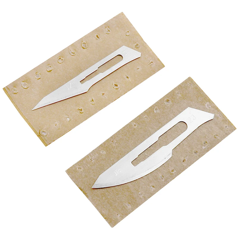 Очень неплохой скальпель. Лезвия острые, идут в индивидуальных упаковках, просто крепятся и прочно сидят. Понравилось.
