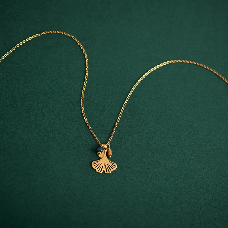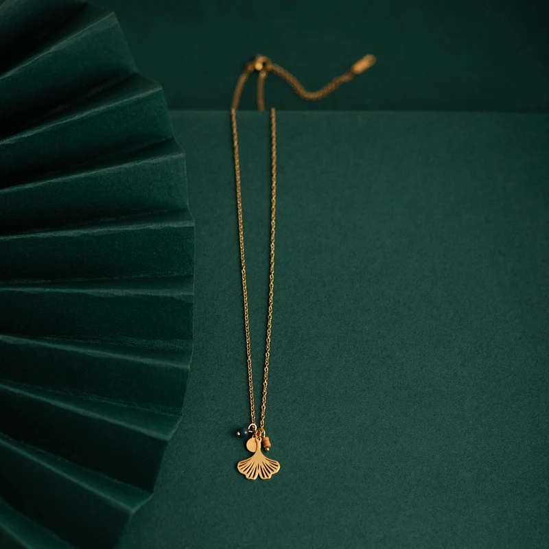 Женское колье с подвеской в виде листьев гинкго, ожерелье ручной работы с золотыми листьями и камнями, ювелирные изделия из нержавеющей стали