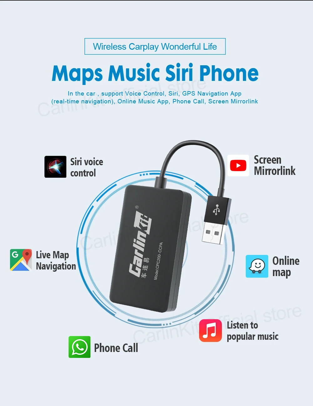 Работает с Радио Android. Беспроводной адаптер-должен быть включен Siri Bluetooth WiFi iPhone. Хороший контакт с продавцом. Доставка в Польшу в течение нескольких дней.