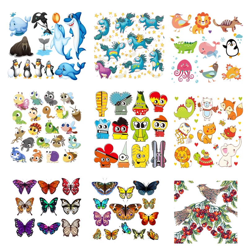 Термоклейкие патчи для одежды, наклейки сделай сам с термоклейким покрытием, с рисунком бабочки, плавкие аппликации в виде животных для одежды и полосок