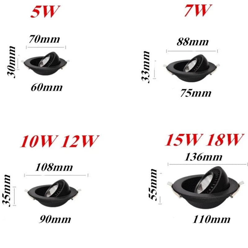 Светодиодный потолочный Точечный светильник 5 Вт, 7 Вт, 10 Вт, 15 Вт, 18 Вт, с поворотным углом, 110 В переменного тока, 220 В, черныйбелый корпусветильник