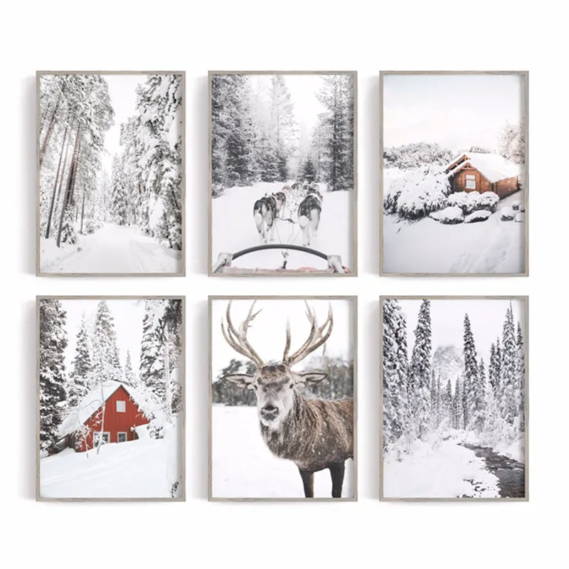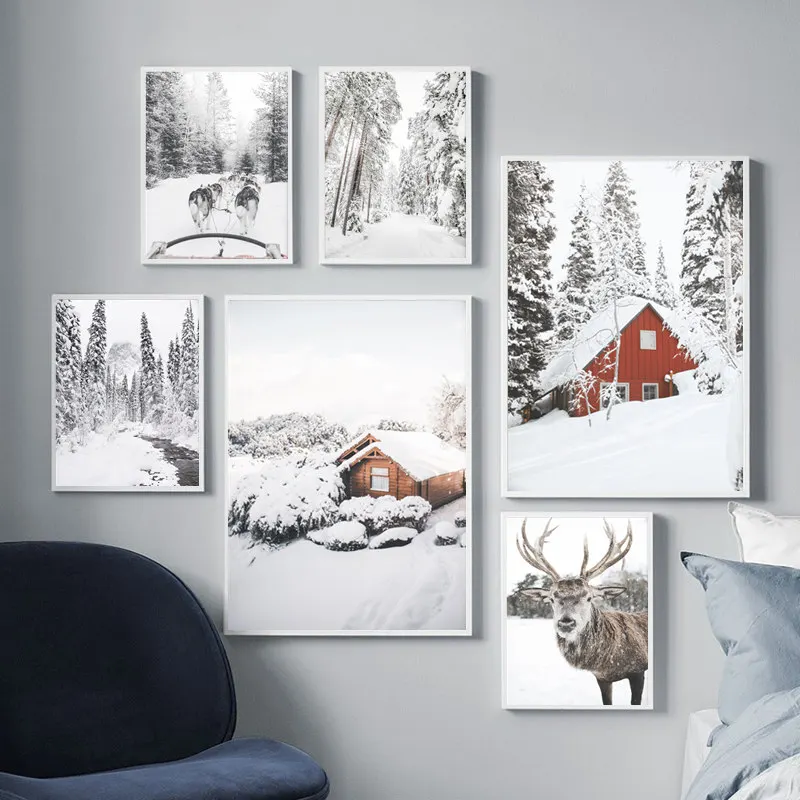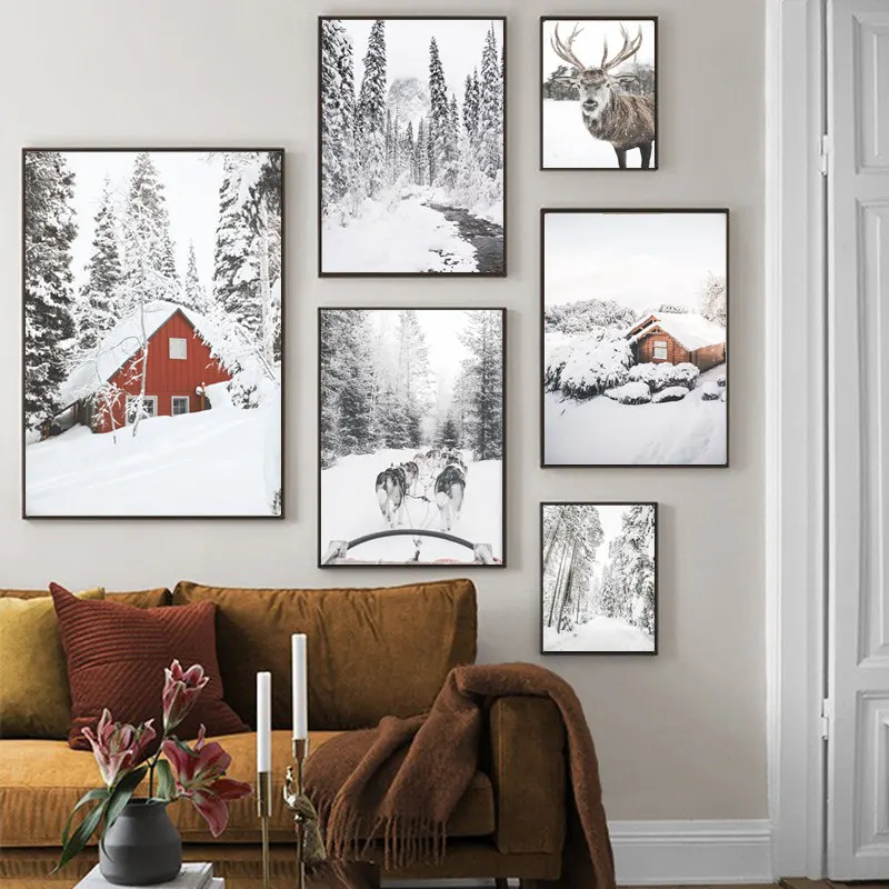 Рождественский снег лес настенные картины красный дом стены искусства холст картины Скандинавии изображение домашний Декор в гостиную плакат