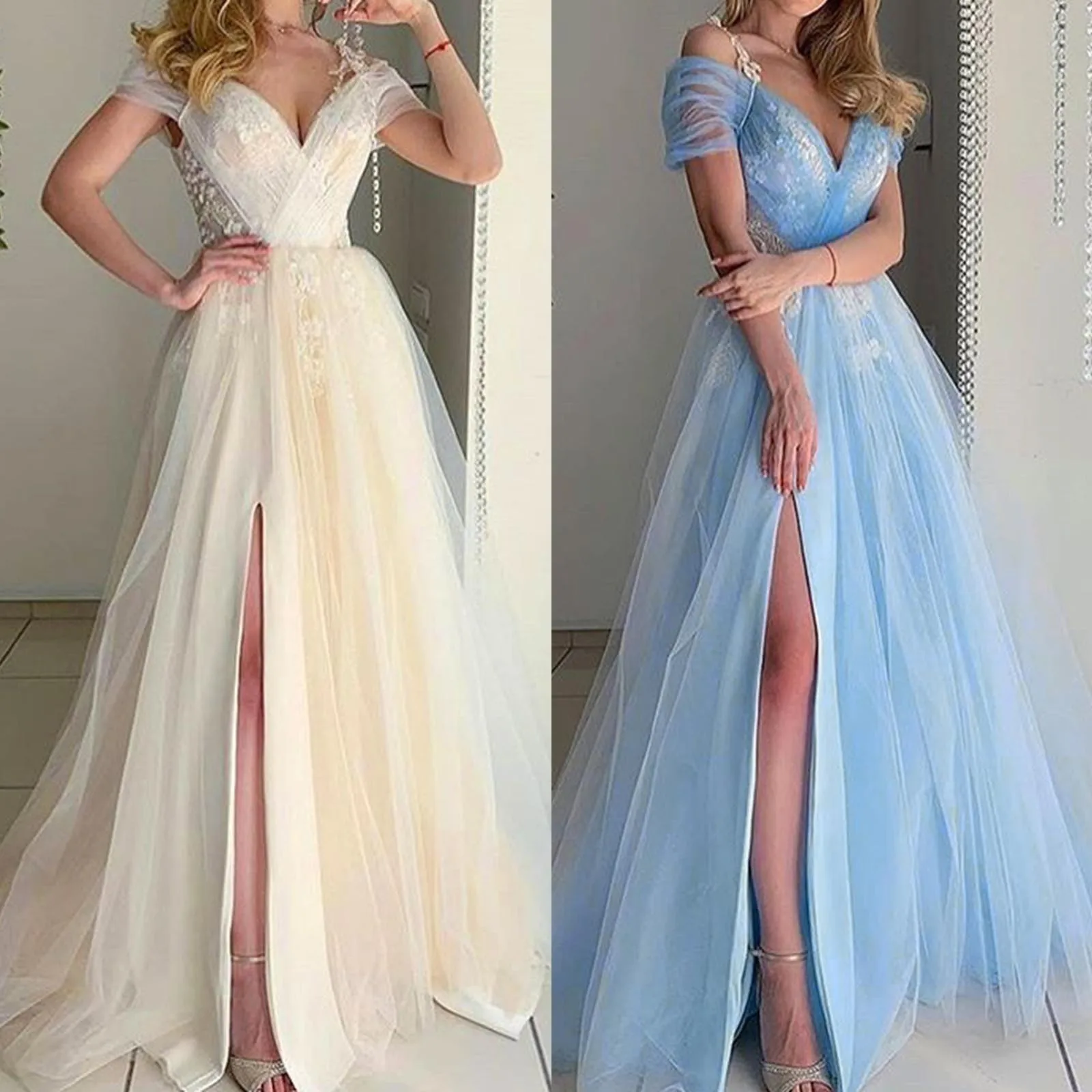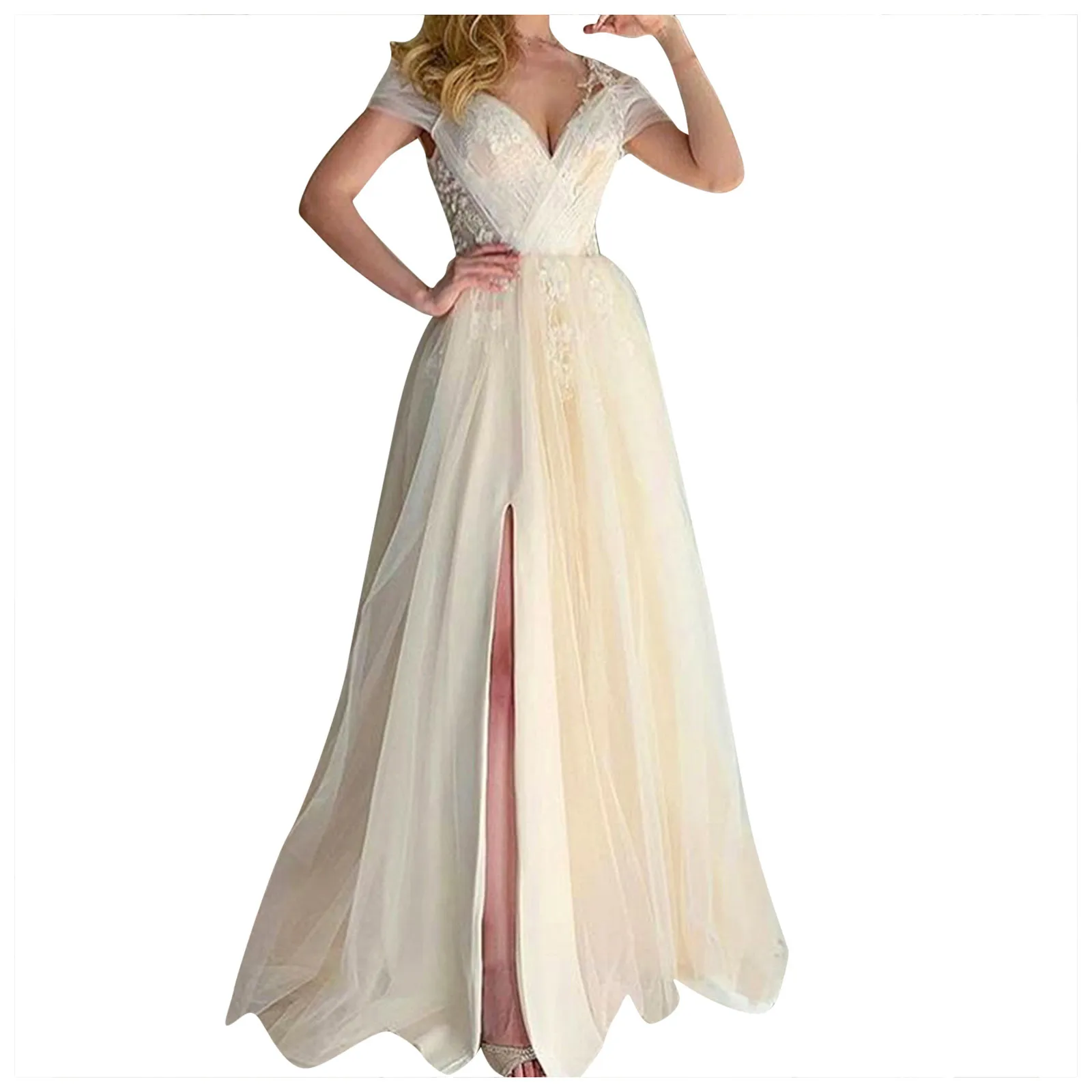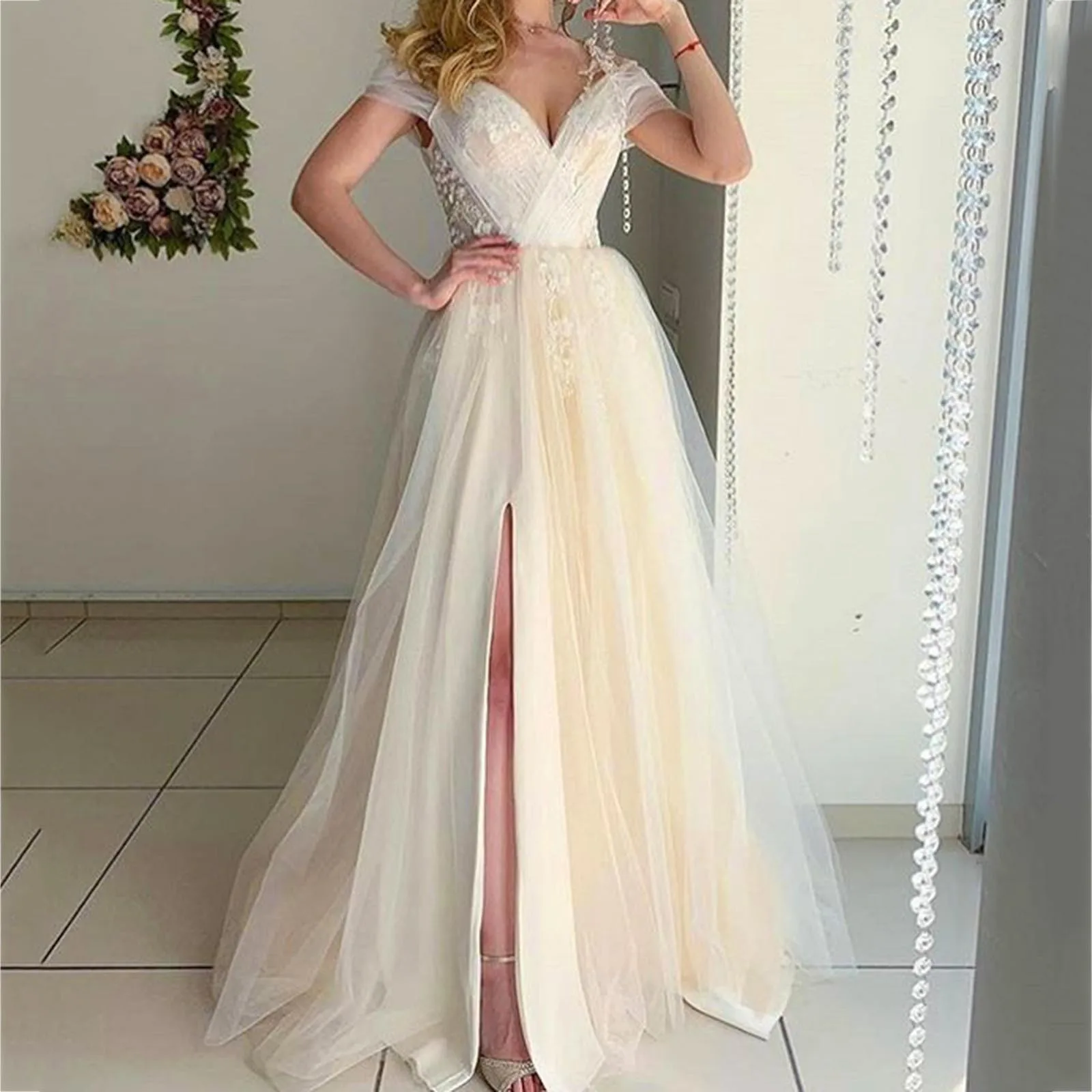 Женское длинное Платье 40 # с V-образным вырезом, сексуальное кружевное асимметричное Платье макси, свадебное Платье, Женское Вечернее Платье
