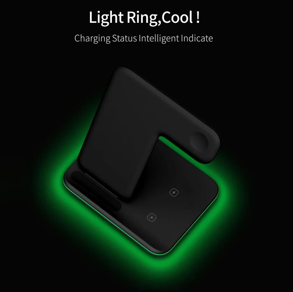 【 Беспроводное зарядное устройство 3 в 1 дизайн 3 в 1 беспроводная зарядная станция может заряжать ваш телефон/часы/гарнитуру одновременно, многофункциональная конструкция обеспечивает вам аккуратную зарядную подставку. Беспроводное зарядное устройство 3 в 1 требует только 1 зарядный кабель сделает вашу комнату или стол более простым и аккуратным, так что ваша жизнь будет более удобной.