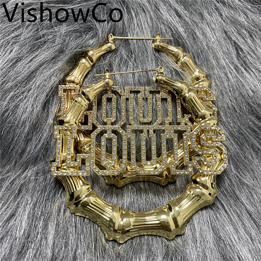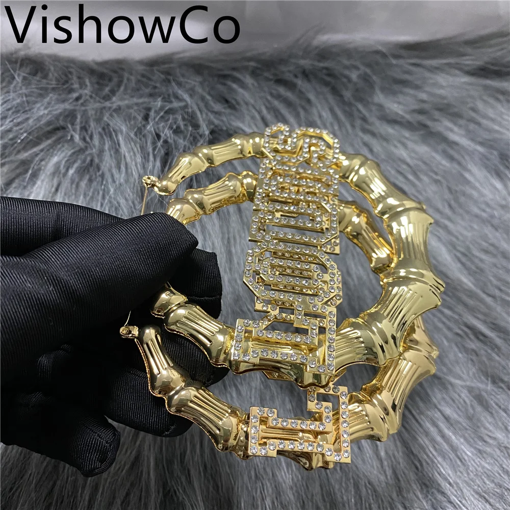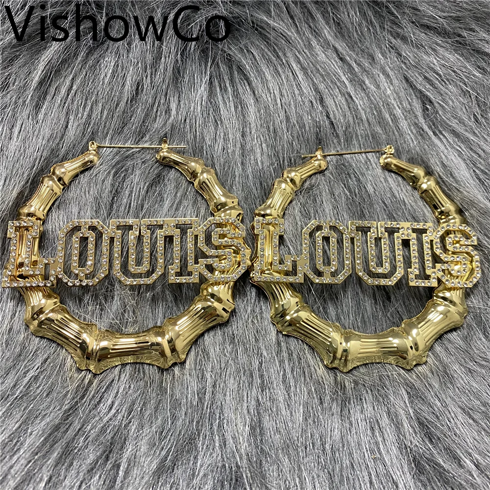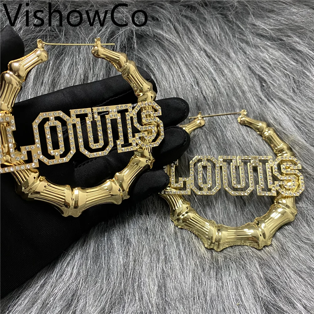 Модные популярные серьги VishowCo в стиле хип-хоп с именем на заказ, Сексуальные бамбуковые круглые украшения, праздничный подарок