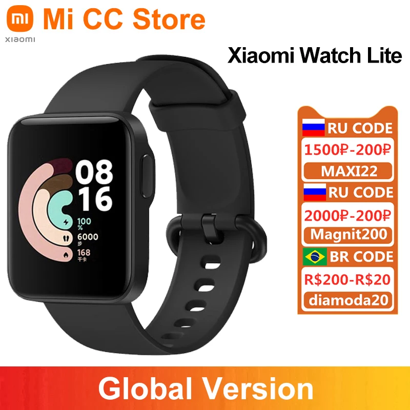 Смарт-часы Xiaomi Mi Watch Lite глобальная версия дюйма, GPS, фитнес-трекер, пульсометр, Bluetooth 1,4