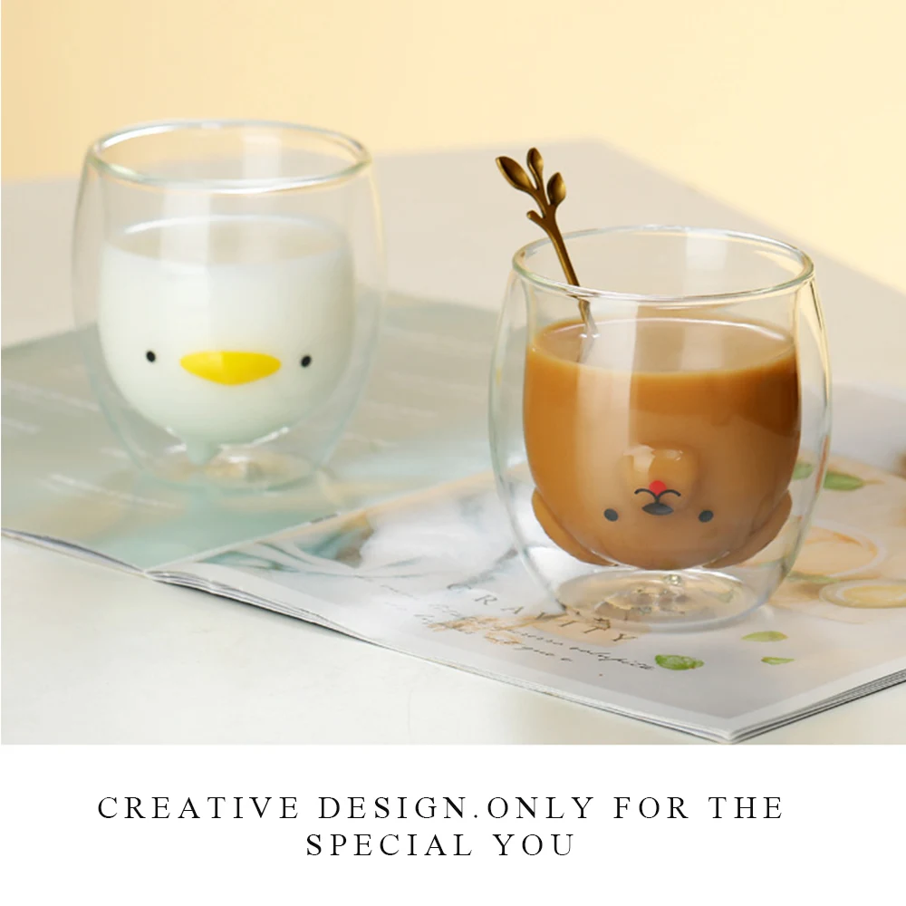 Креативная двухслойная кофейная кружка с милым медведем, двойная стеклянная мультяшная кружка с изображением ребенка, утенка, животного, молока, милая Женская Подарочная кружка, рождественский подарок