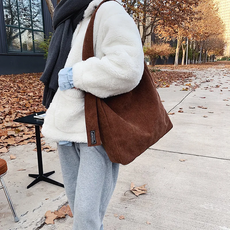 Высокая вместительность вельветовые сумки на плечо для женщин 2021 зимняя модная трендовая дорожная сумка дамские сумки Роскошная сумочка