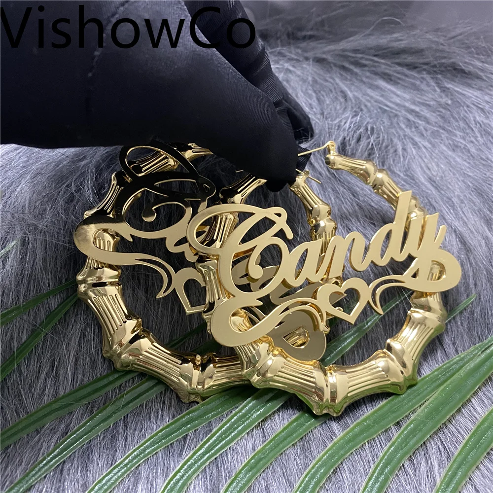 VishowCo 30 мм-100 мм Бамбук Серьги-кольца бамбуковые стильные индивидуальные серьги с именем на заказ ювелирные изделия на заказ подарок для женщин