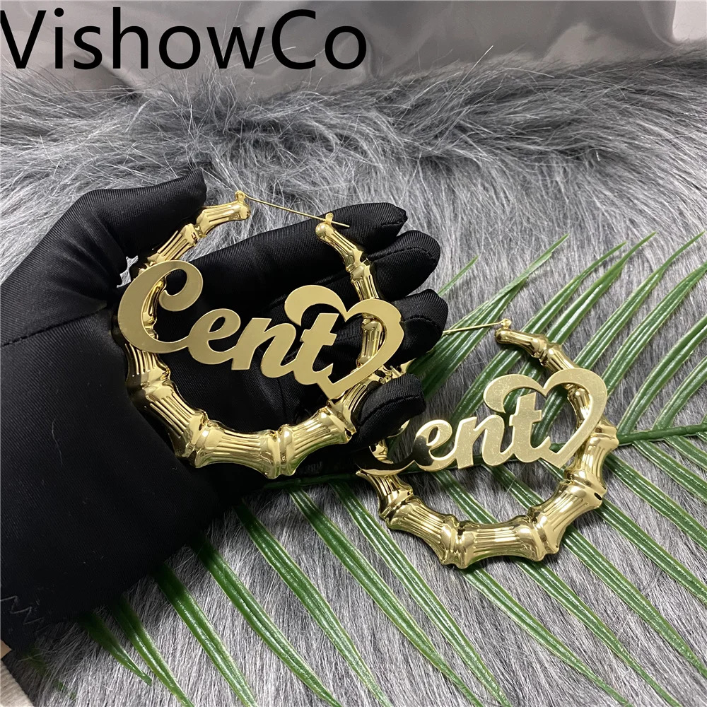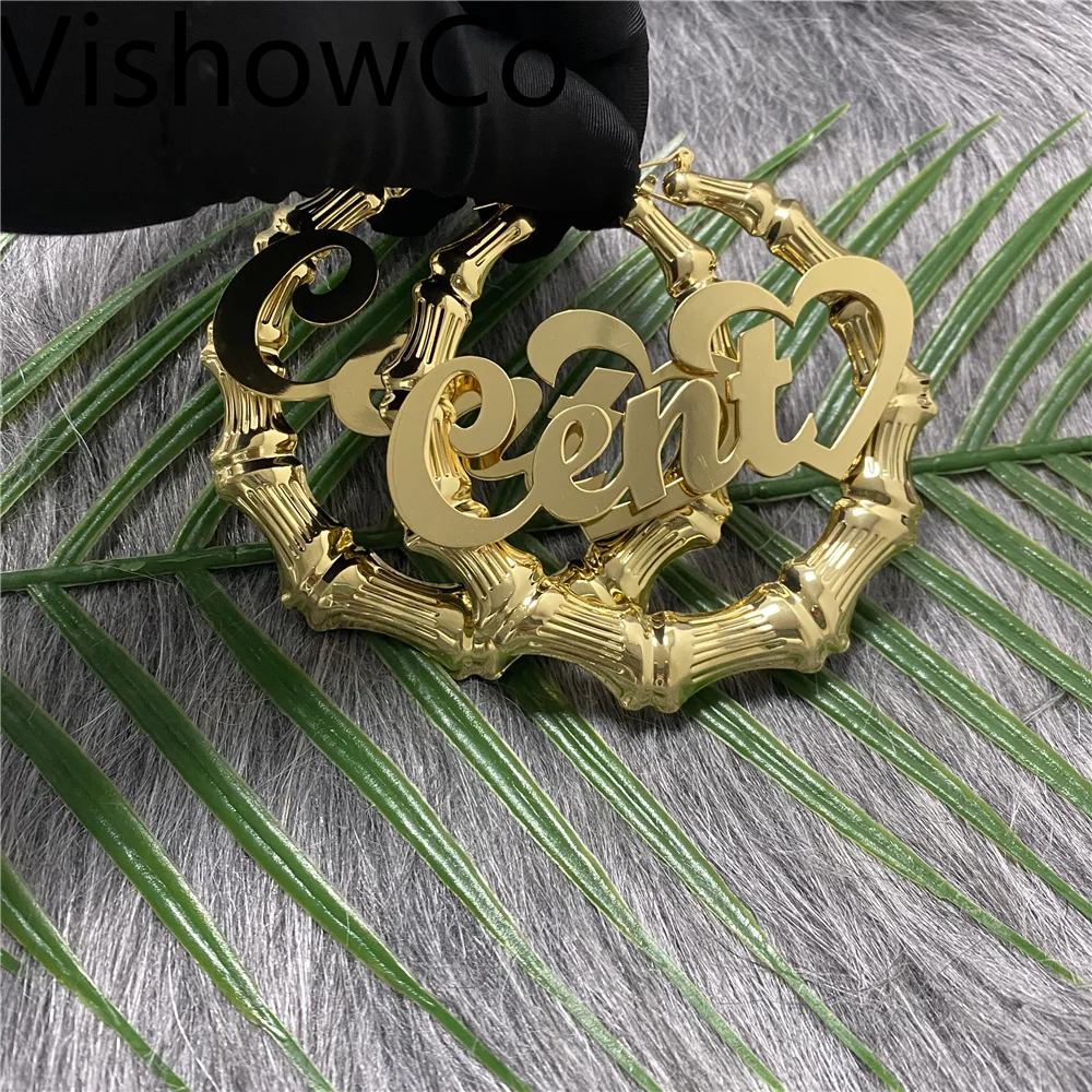 Висячие серьги с именем VishowCo, персонализированные круглые серьг...