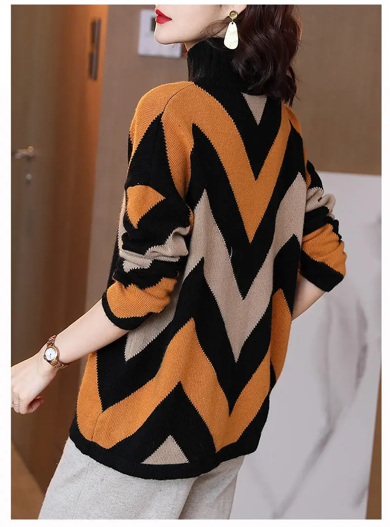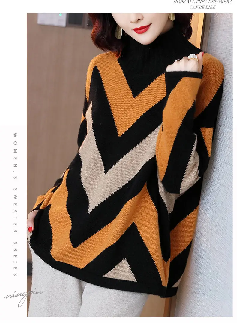 Женский трикотажный свитер, зимняя Модная вязаная шерстяная водолазка со вставками, 2021