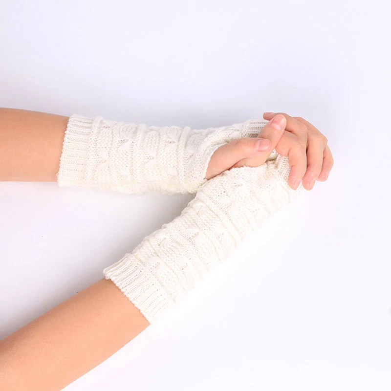Митенки, перчатки, зимние теплые трикотажные перчатки без пальцев для женщин, вязаные Стрейчевые рукавицы на полпальца, вязаные крючком искусственные перчатки в подарок