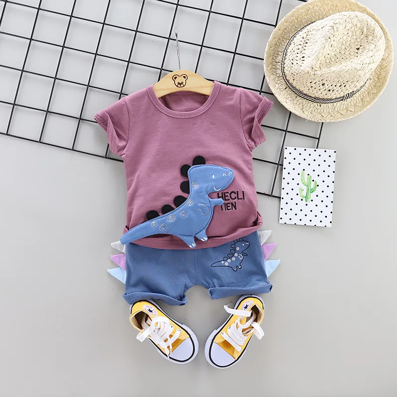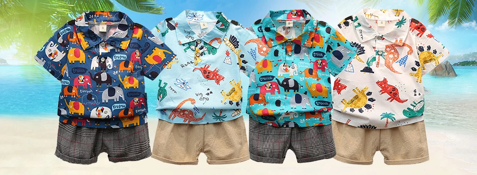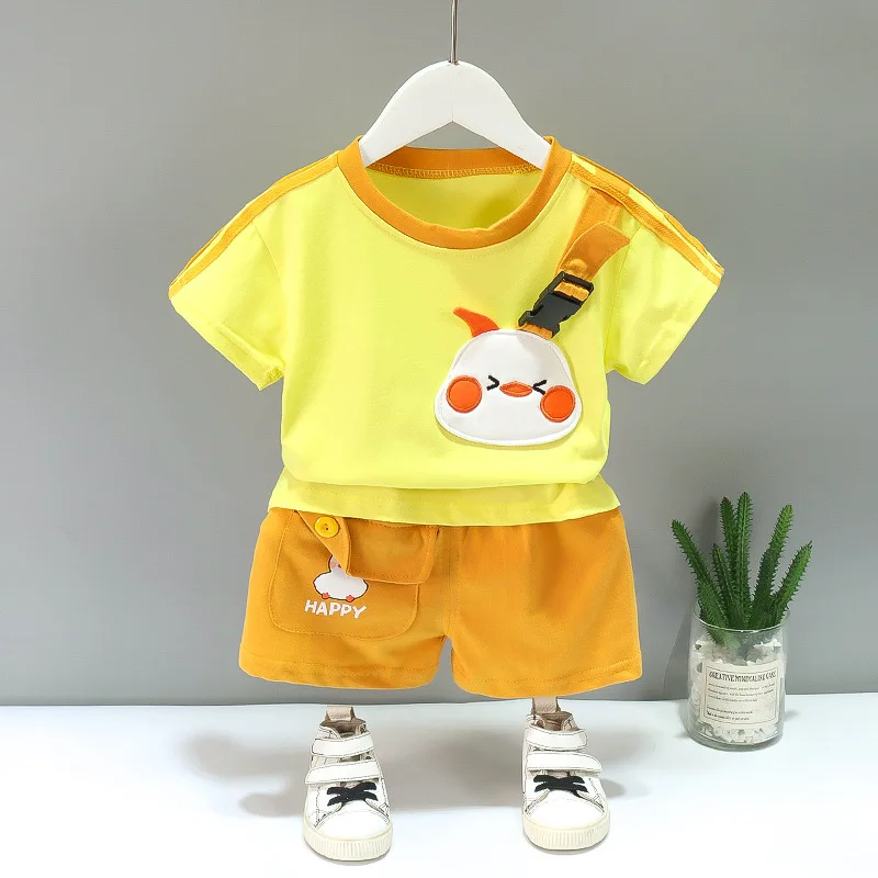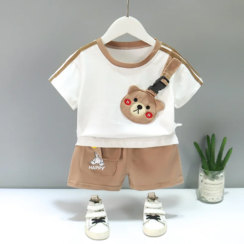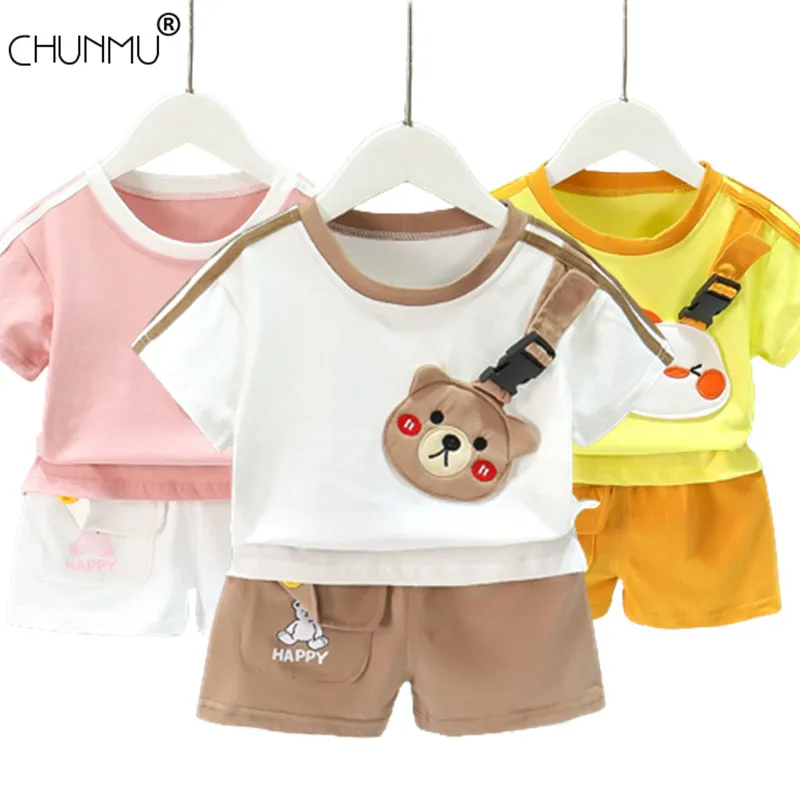 Комплект для младенцев, летняя одежда для маленьких мальчиков, модный спортивный костюм, детская футболка-портфель с животным принтом + шорты, детский костюм из 2 предметов, одежда для девочек 0-5 лет
