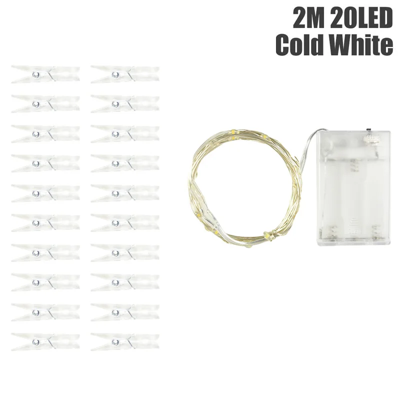 Светодиодная гирлянда с зажимом для фотографий, уличная гирлянда с питанием от USB, Рождественское украшение вечерние, свадьбы, 2 м, 20 светодиодов