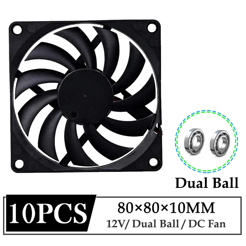 Двойной шариковый вентилятор, 10 шт., 80 мм, 12 В